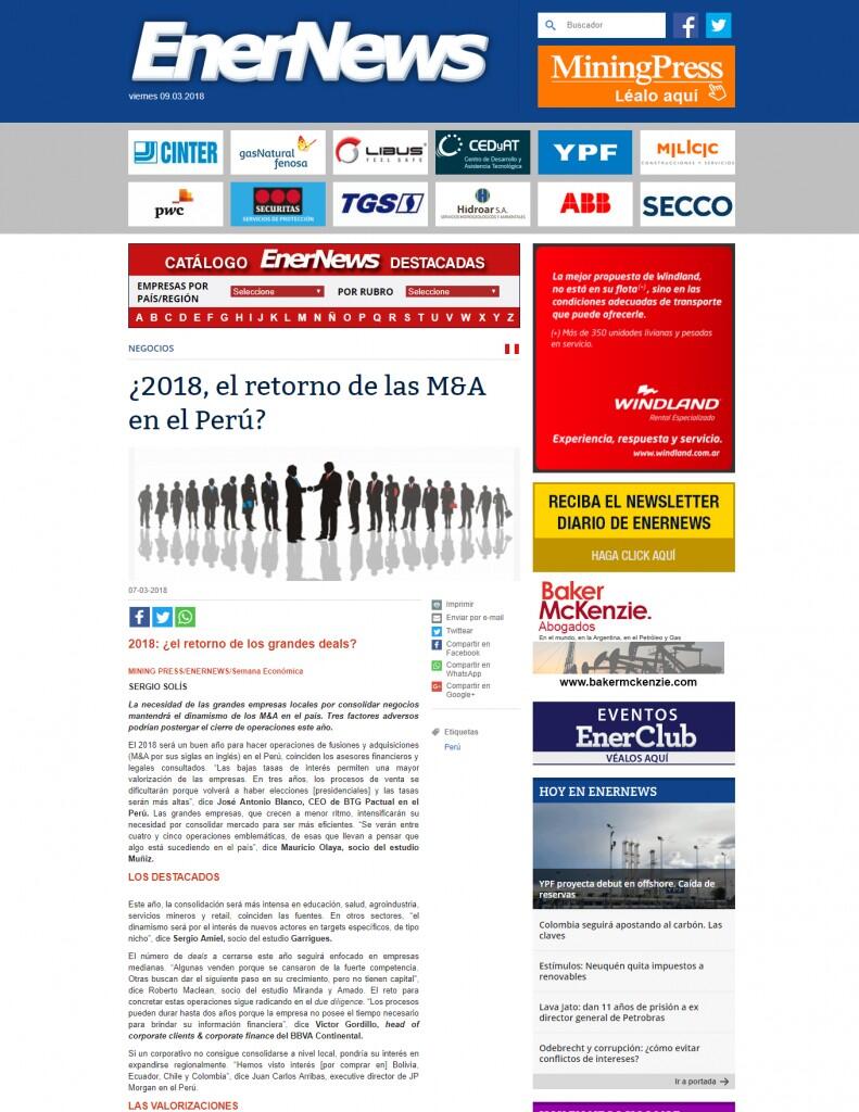 ¿2018, el retorno de las M&A en Perú?