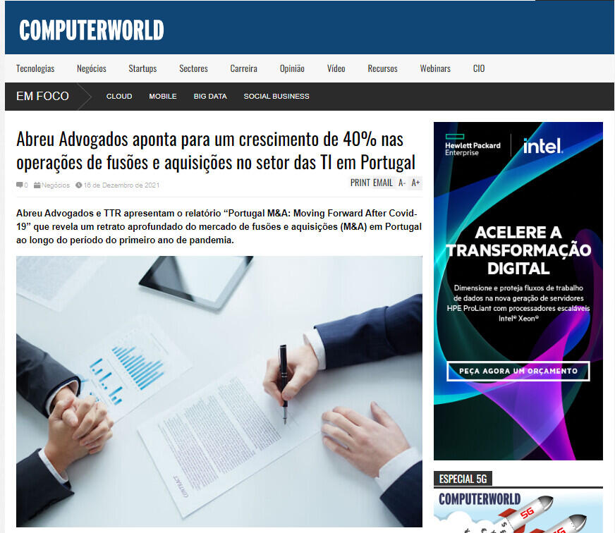 Abreu Advogados aponta para um crescimento de 40% nas operações de fusões e aquisições no setor das TI em Portugal