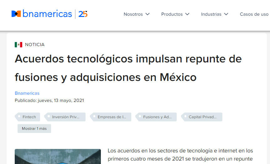 Los acuerdos en los sectores de tecnología e internet en los primeros cuatro meses de 2021 se tradujeron en un repunte de las fusiones y adquisiciones en México, según la firma de investigación Transactional Track Record (TTR).