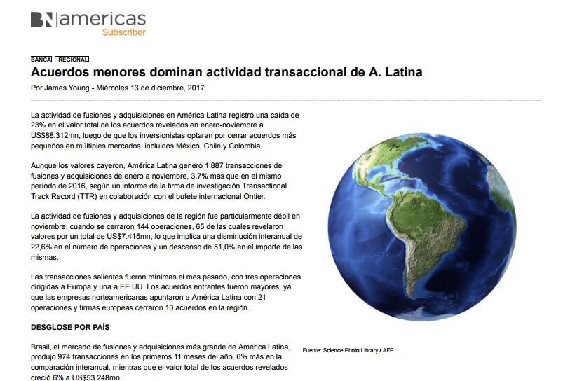 Acuerdos menores dominan actividad transaccional de A. Latina