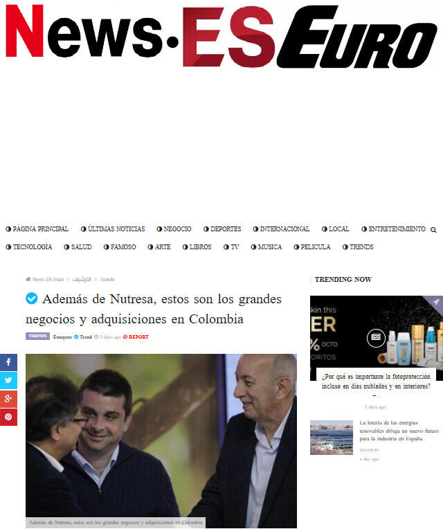 El negocio de Nutresa, de concretarse en las condiciones previstas, es decir, por cerca de 12.000 millones de dólares y durante lo que resta de este año, según anticipa esta editorial, en base a información proporcionada por fuentes del mercado, sería una transacción del orden de 46 mil millones de pesos.