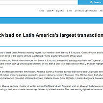 According to Transactional Track Record’s latest Latin America monthly report, our member firms Barros & Errázuriz, Gómez-Pinzón and Mijares, Angoitia, Cortés y Fuentes have advised on three of the largest Venture Capital and Private Equity transactions of May 2022.
