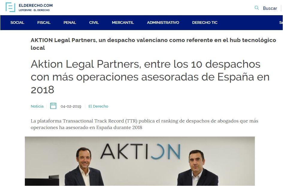 Aktion Legal Partners, entre los 10 despachos con más operaciones asesoradas de España en 2018