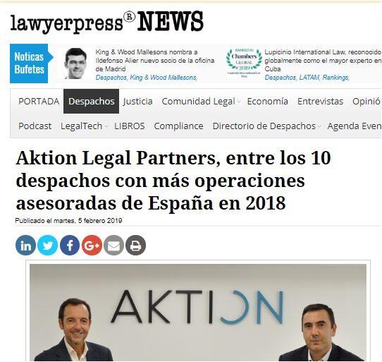 Aktion Legal Partners, entre los 10 despachos con más operaciones asesoradas de España en 2018
