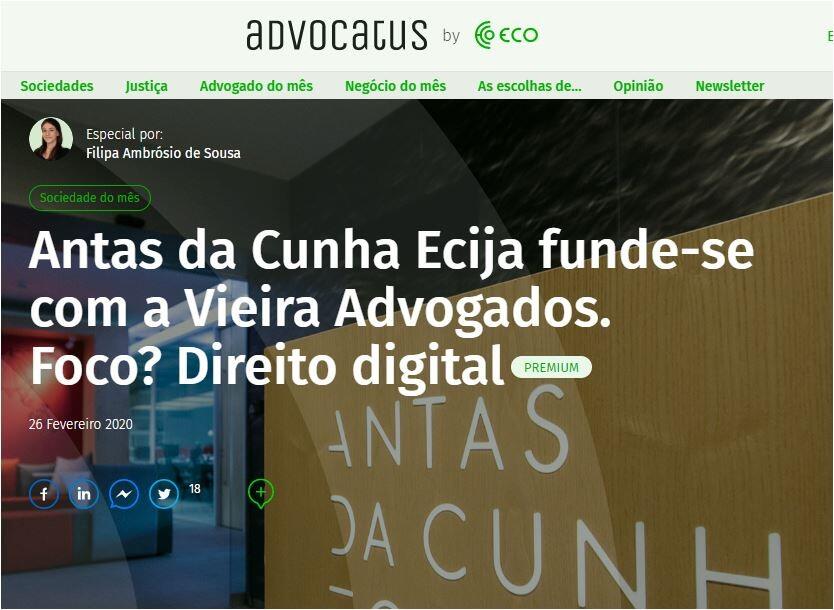 Direito digital. Esta área de negócio é a razão da mais recente união no mapa dos escritórios de advogados. A Antas da Cunha ECIJA acaba de se fundir com a Vieira Advogados com o foco nessa área do direito.
