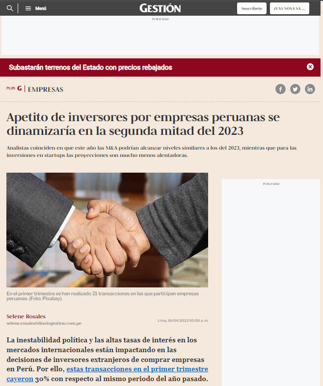Analistas consultado por Gestión coinciden en señalar que durante el segundo semestre del 2023, se podrían dar varias adquisiciones importantes.