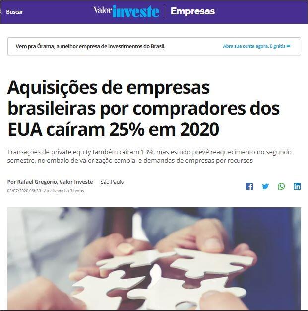 Aquisições de empresas brasileiras por compradores dos EUA caíram 25% em 2020