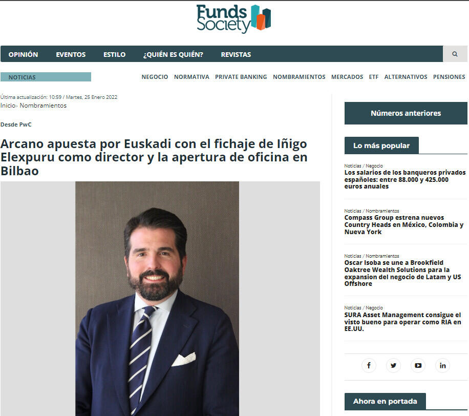 Hasta el momento, Arcano ya había participado en varias operaciones en la zona norte. Entre ellas destacan el asesoramiento de la firma en la venta de Hiperbaric; la compra de una participación de Aernnova por parte de Towerbrook; y la adquisición de la aseguradora Previsora Bilbaína por Catalana Occidente. Ahora, con la incorporación del nuevo director en Bilbao, la firma muestra su apuesta de manera específica por Euskadi.