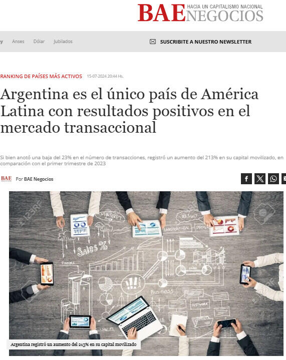 Argentina es el único país de América Latina con resultados positivos en el mercado transaccional