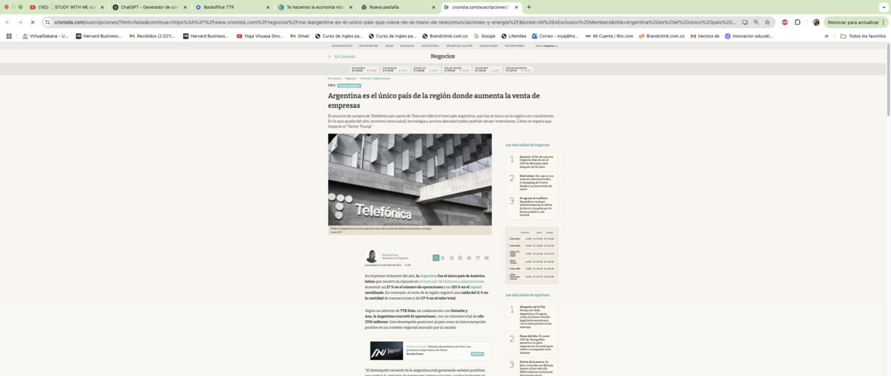 Argentina es el único país de la región donde aumenta la venta de empresas