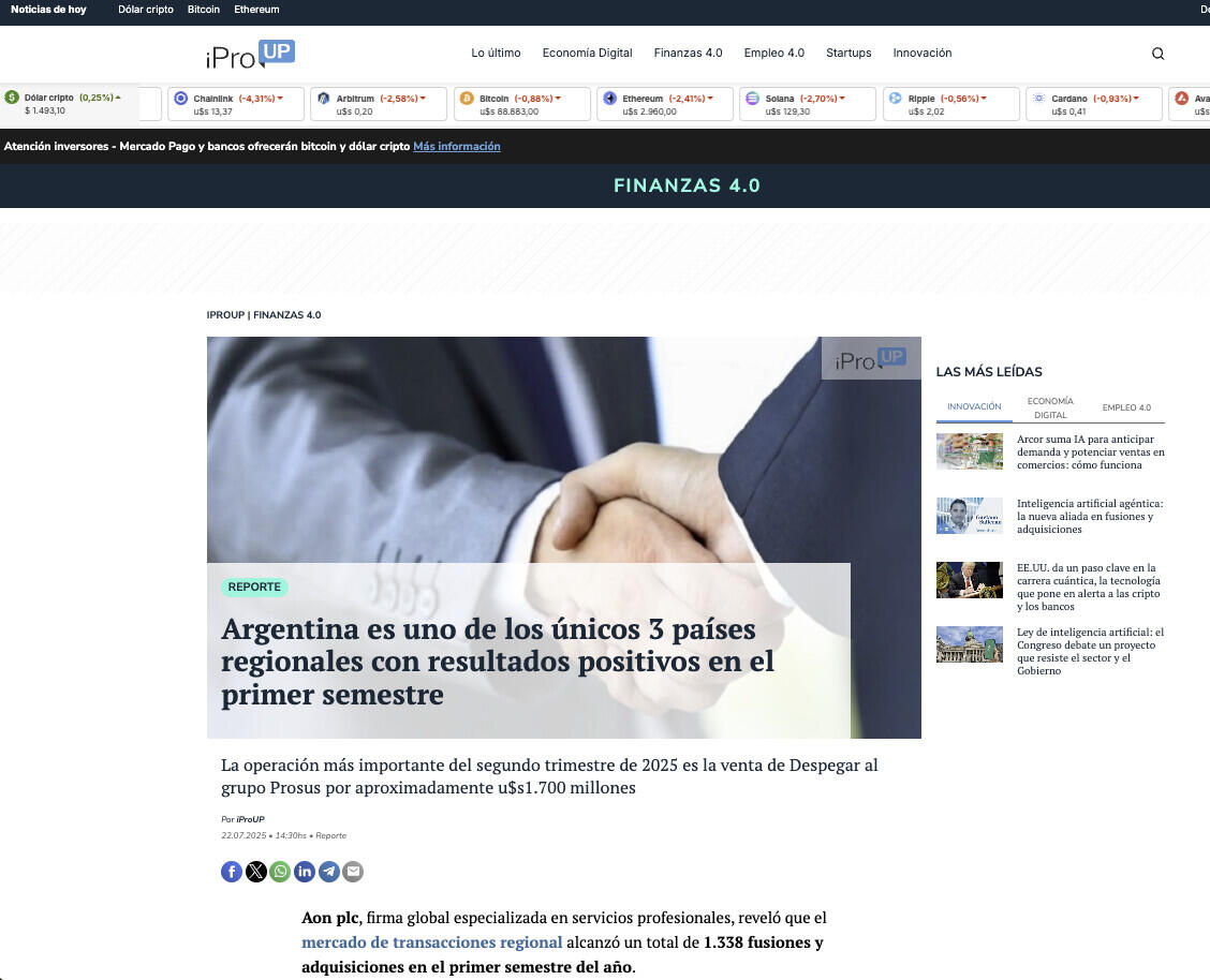 La operación más importante del segundo trimestre de 2025 es la venta de Despegar al grupo Prosus por aproximadamente u$s1.700 millones