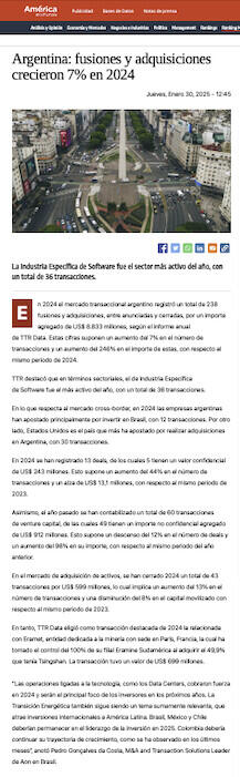 Argentina: fusiones y adquisiciones crecieron 7% en 2024