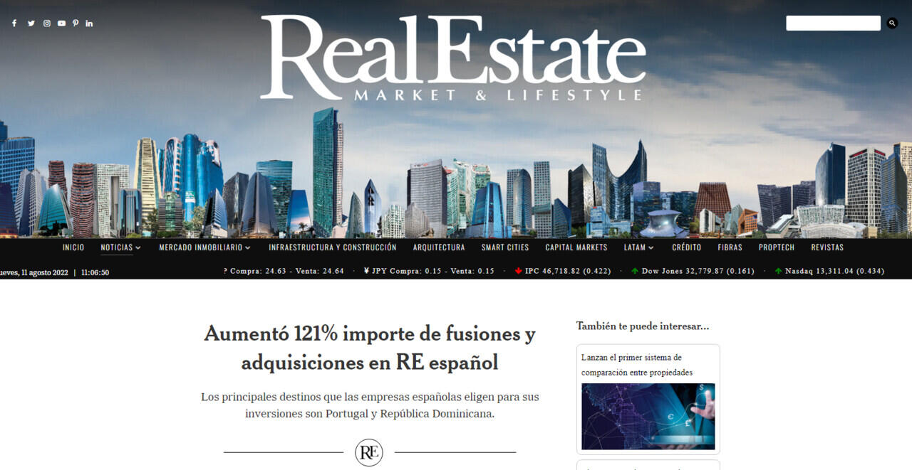 Aumentó 121% importe de fusiones y adquisiciones en RE español