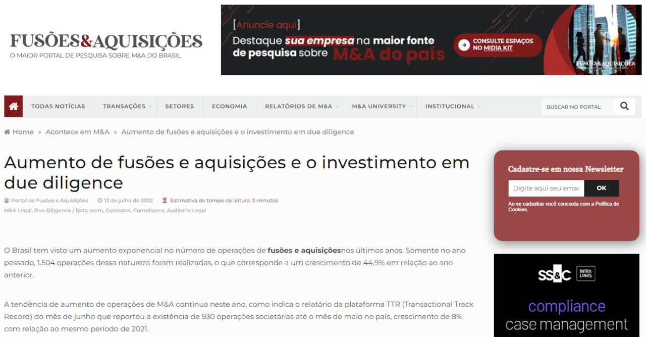 Aumento de fusões e aquisições e o investimento em due diligence