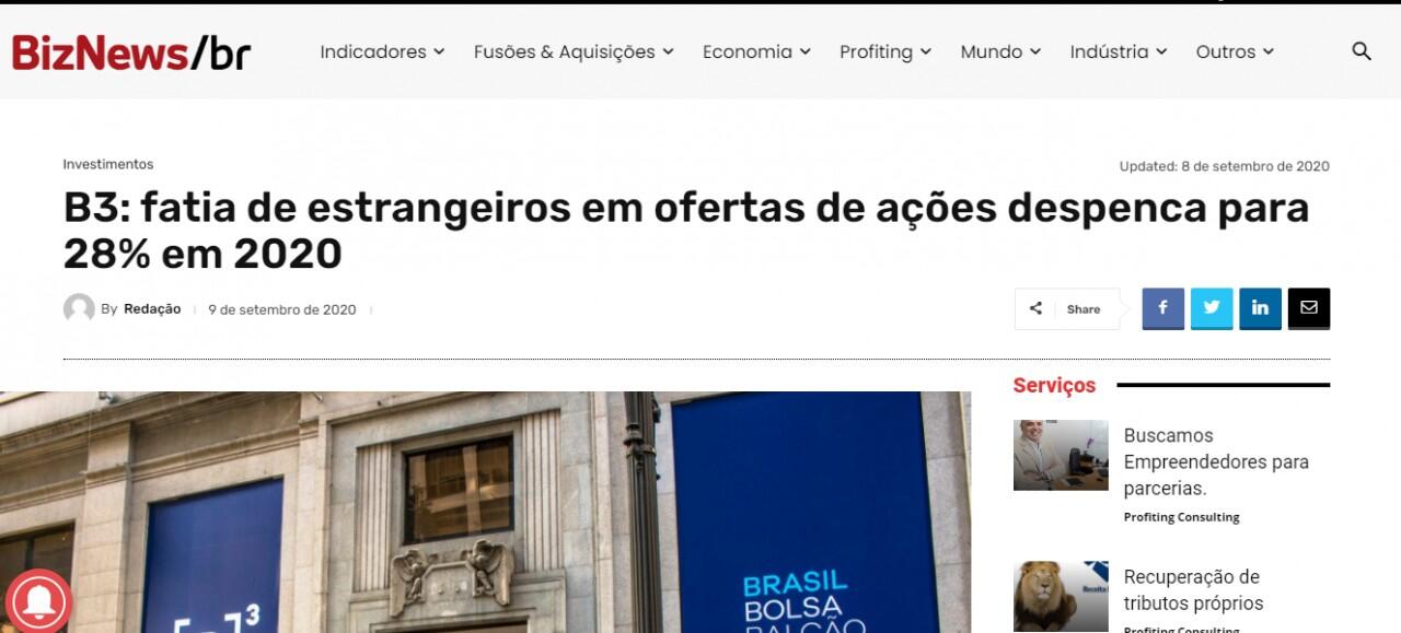 B3: fatia de estrangeiros em ofertas de ações despenca para 28% em 2020
