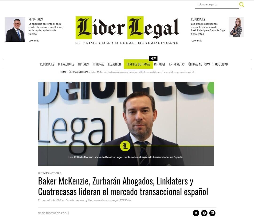 El principal reto del equipo de M&A de Deloitte Legal para 2024 es seguir trabajando en nuestro enfoque extremo a extremo en el ámbito transaccional, que es uno de los ejes estratégicos de la firma y que consideramos la propuesta de valor diferencial de Deloitte Legal. .