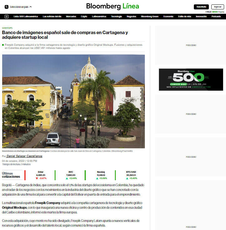 Freepik Company adquirió a la firma cartagenera de tecnología y diseño gráfico Original Mockups. Fusiones y adquisiciones en Colombia alcanzan los US$7.491 millones hasta agosto