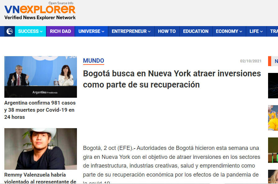 Autoridades de Bogotá hicieron esta semana una gira en Nueva York con el objetivo de atraer inversiones en los sectores de infraestructura, industrias creativas, salud y emprendimiento como parte de su recuperación económica por los efectos de la pandemia de la covid-19.