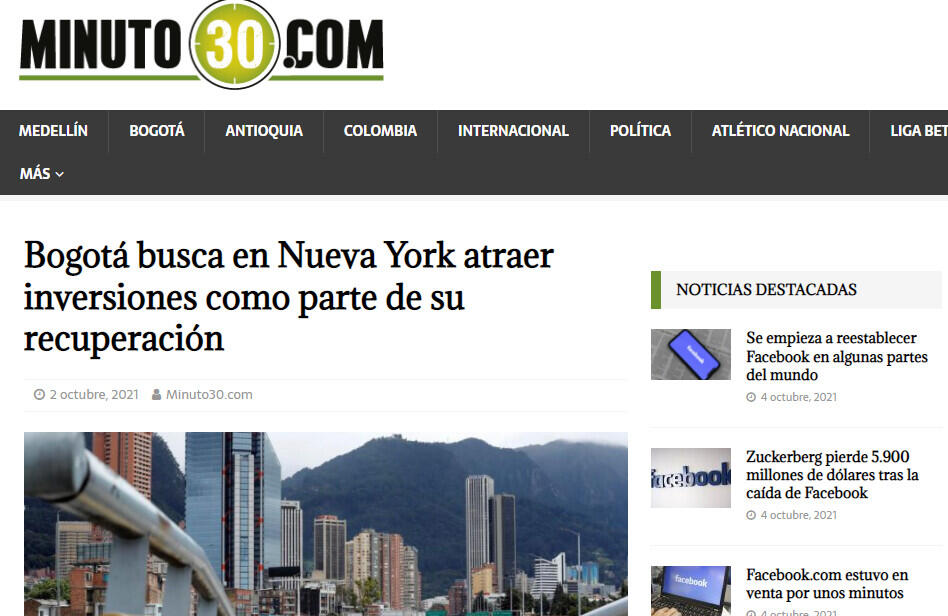 Bogotá busca en Nueva York atraer inversiones como parte de su recuperación