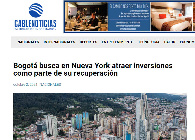 Autoridades de Bogotá hicieron esta semana una gira en Nueva York con el objetivo de atraer inversiones en los sectores de infraestructura, industrias creativas, salud y emprendimiento como parte de su recuperación económica por los efectos de la pandemia de la covid-19.