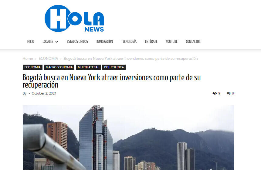 Bogotá busca en Nueva York atraer inversiones como parte de su recuperación