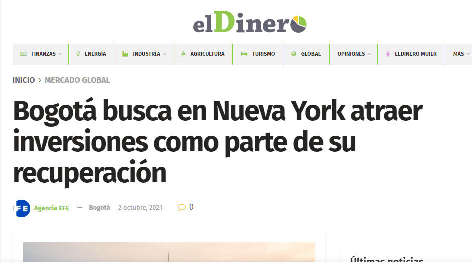 Autoridades de Bogotá hicieron esta semana una gira en Nueva York con el objetivo de atraer inversiones en los sectores de infraestructura, industrias creativas, salud y emprendimiento como parte de su recuperación económica por los efectos de la pandemia del covid-19.