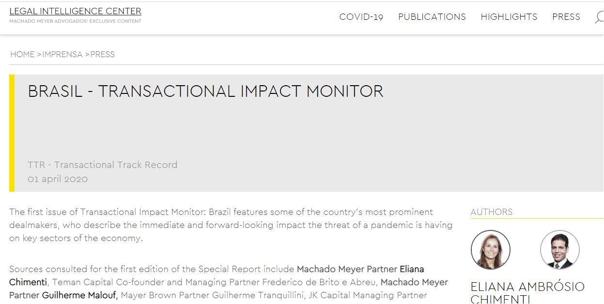 The first issue of Transactional Impact Monitor: Brazil features some of the country's most prominent dealmakers, who describe the immediate and forward-looking impact the threat of a pandemic is having on key sectors of the economy.