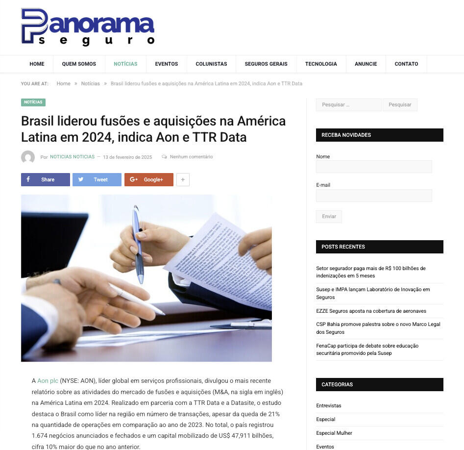 Brasil liderou fusões e aquisições na América Latina em 2024, indica Aon e TTR Data