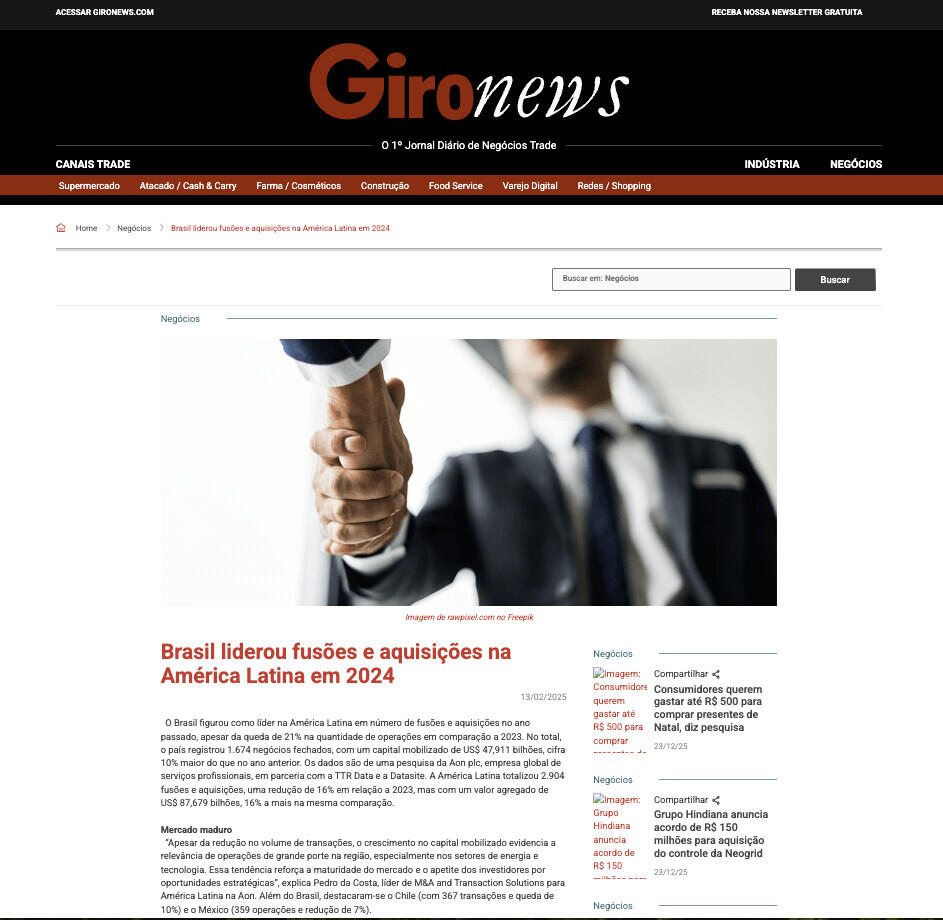 Brasil liderou fusões e aquisições na América Latina em 2024