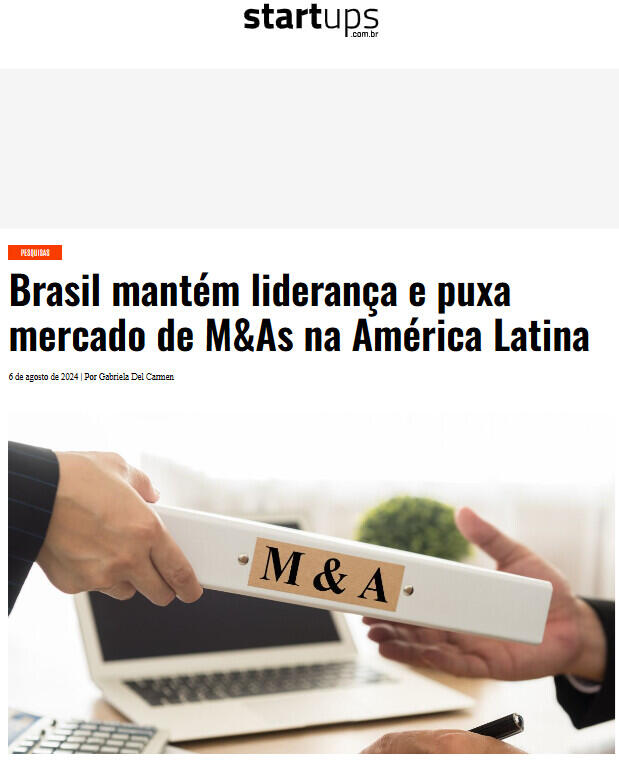 O Brasil movimentou cerca de US$ 20 bilhões no período, distribuídos entre as 365 transações que tiveram seu valor revelado. O resultado indica uma queda de apenas 3% comparado ao primeiro semestre de 2023.