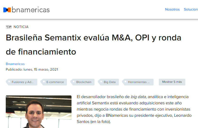 El desarrollador brasileño de big data, analítica e inteligencia artificial Semantix está evaluando adquisiciones este año mientras negocia rondas de financiamiento con inversionistas privados, dijo a BNamericas su presidente ejecutivo, Leonardo Santos (en la foto).