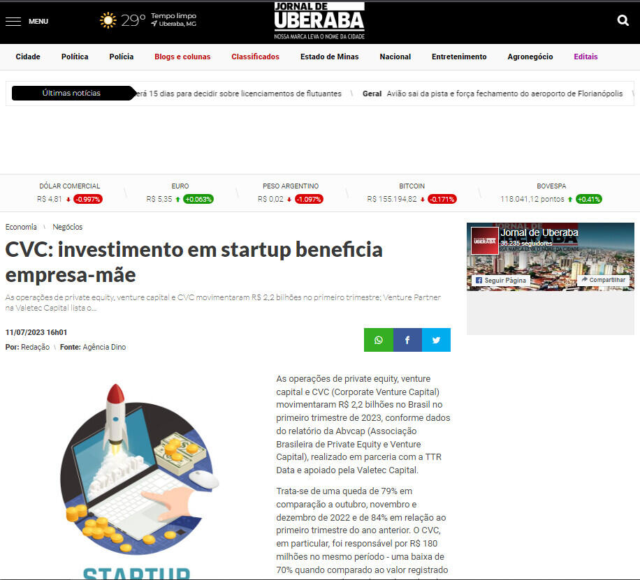 As operações de private equity, venture capital e CVC (Corporate Venture Capital) movimentaram R$ 2,2 bilhões no Brasil no primeiro trimestre de 2023, conforme dados do relatório da Abvcap (Associação Brasileira de Private Equity e Venture Capital), realizado em parceria com a TTR Data e apoiado pela Valetec Capital.