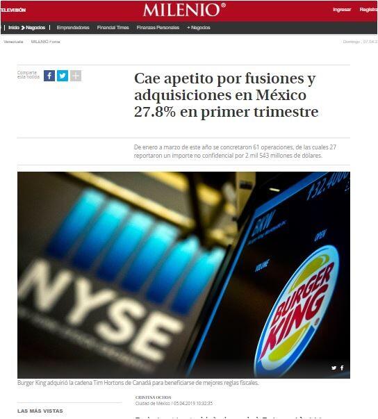 Cae apetito por fusiones y adquisiciones en México 27.8% en primer trimestre