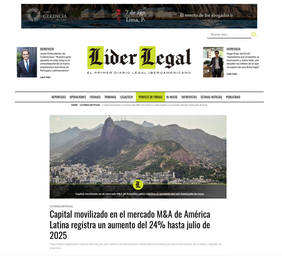 Capital movilizado en el mercado M&A de América Latina registra un aumento del 24% hasta julio de 2025