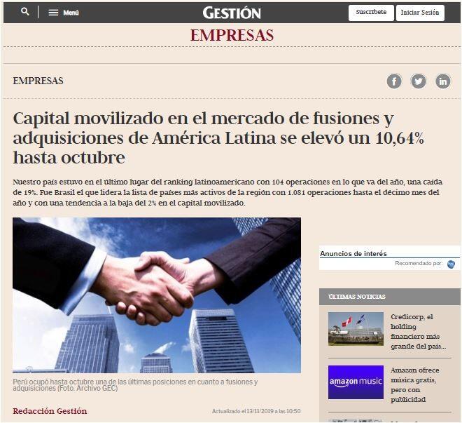 Si hablamos del mercado peruano, nuestro país estuvo en el último lugar del ranking latinoamericano con 104 operaciones, una caída de 19%. Fue Brasil el que lidera el ranking de países más activos de la región con 1.081 operaciones (con un aumento interanual del 7%), y con una tendencia a la baja del 2% en el capital movilizado (US$ 43.211 millones).