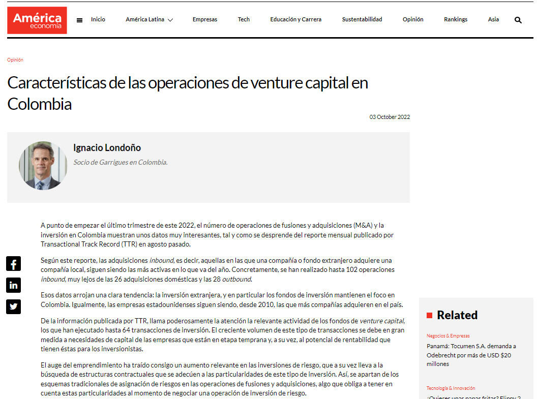Características de las operaciones de venture capital en Colombia