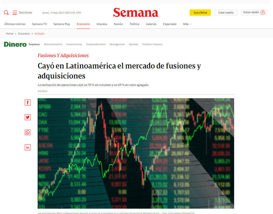 La actividad del mercado de fusiones y adquisiciones (M&A) disminuyó considerablemente durante el último semestre del 2022 y continua con esta tendencia en los primeros meses del 2023.