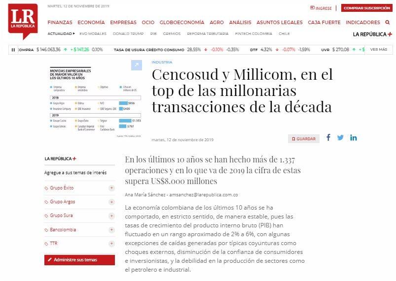 Cencosud y Millicom, en el top de las millonarias transacciones de la década