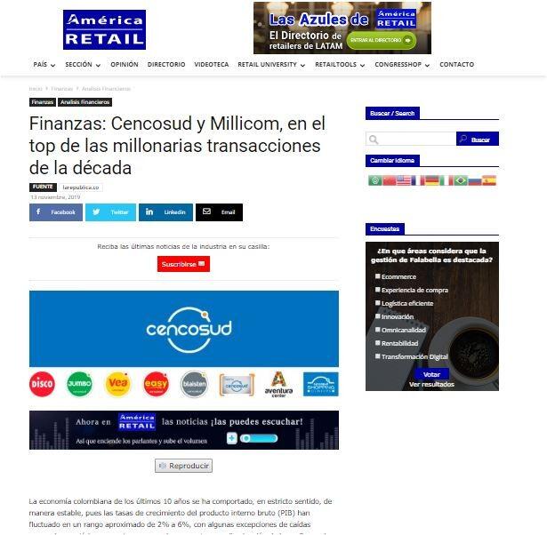 Cencosud y Millicom, en el top de las millonarias transacciones de la década
