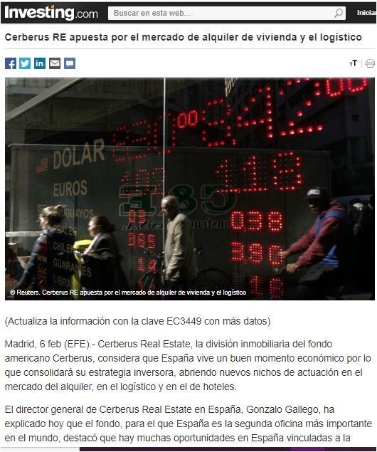 Cerberus Real Estate, la división inmobiliaria del fondo americano Cerberus, considera que España vive un buen momento económico por lo que consolidará su estrategia inversora, abriendo nuevos nichos de actuación en el mercado del alquiler, en el logístico y en el de hoteles.