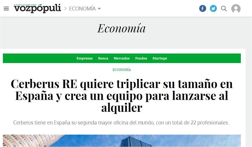 Cerberus RE quiere triplicar su tamaņo en Espaņa y crea un equipo para lanzarse al alquiler