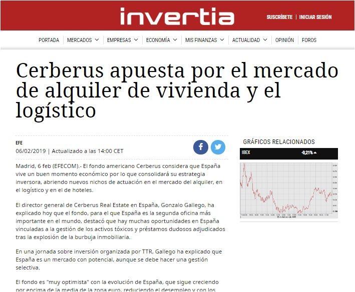 El fondo americano Cerberus considera que España vive un buen momento económico por lo que consolidará su estrategia inversora, abriendo nuevos nichos de actuación en el mercado del alquiler, en el logístico y en el de hoteles.