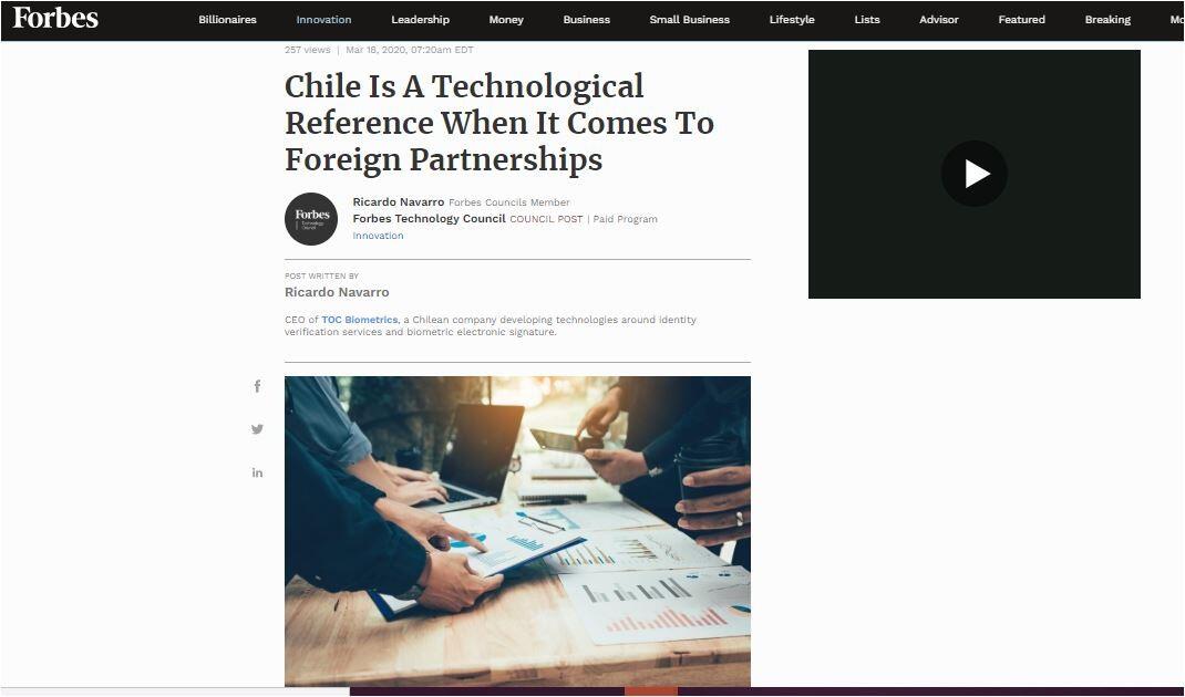 I believe it's important that the technology industry recognize and partner with foreign organizations, and take pride in the advancements and cornerstones of different regions. At my company, a biometrics and identity authentication company, we celebrate the enormous advances that Chile has achieved. My company began as a startup and after 10 years, we are exporting “Made in Chile” creations to different corners of the world, including countries like England. There are many other disruptive companies leading as examples with technologies of the future.