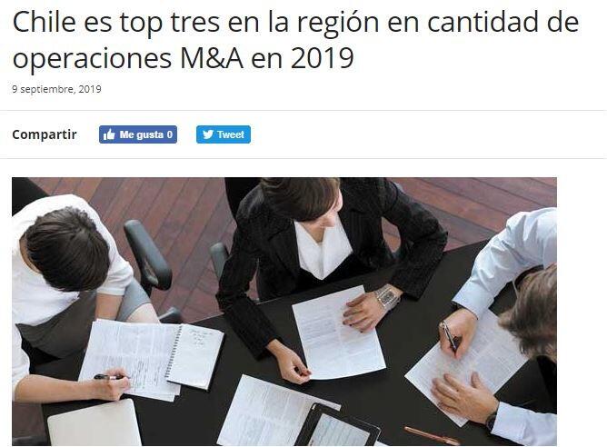 Chile es top tres en la región en cantidad de operaciones M&A en 2019