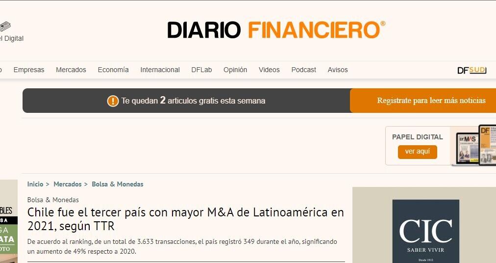 Chile fue el tercer país con mayor M&A de Latinoamérica en 2021, según TTR.