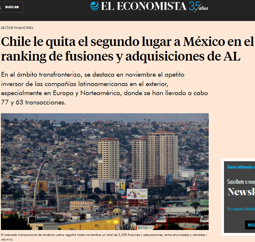 Chile le quita el segundo lugar a México en el ranking de fusiones y adquisiciones de AL