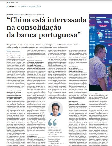 Oliver Hill, editor do Transactional Track Record (TTR), a plataforma de business intelligence líder nos mercados da Península Ibérica, América Latina e Caraíbas – que todas as grandes sociedades de advogados especializadas em M&A destacam nos seus sites e que os principais gestores dos fundos de investimento internacionais subscrevem –, em entrevista telefónica exclusiva ao JE, destaca as áreas que serão objeto de consolidação em 2021 e 2022, e chama a atenção para a entrada em Portugal de novos investidores chineses. Mantendo reserva sobre a sua localização geográfica, Oliver Hill, além de especialista em fusões e aquisições, acompanha o universo musical, tendo realizado em Cuba o documentário “La rumba me llama”.