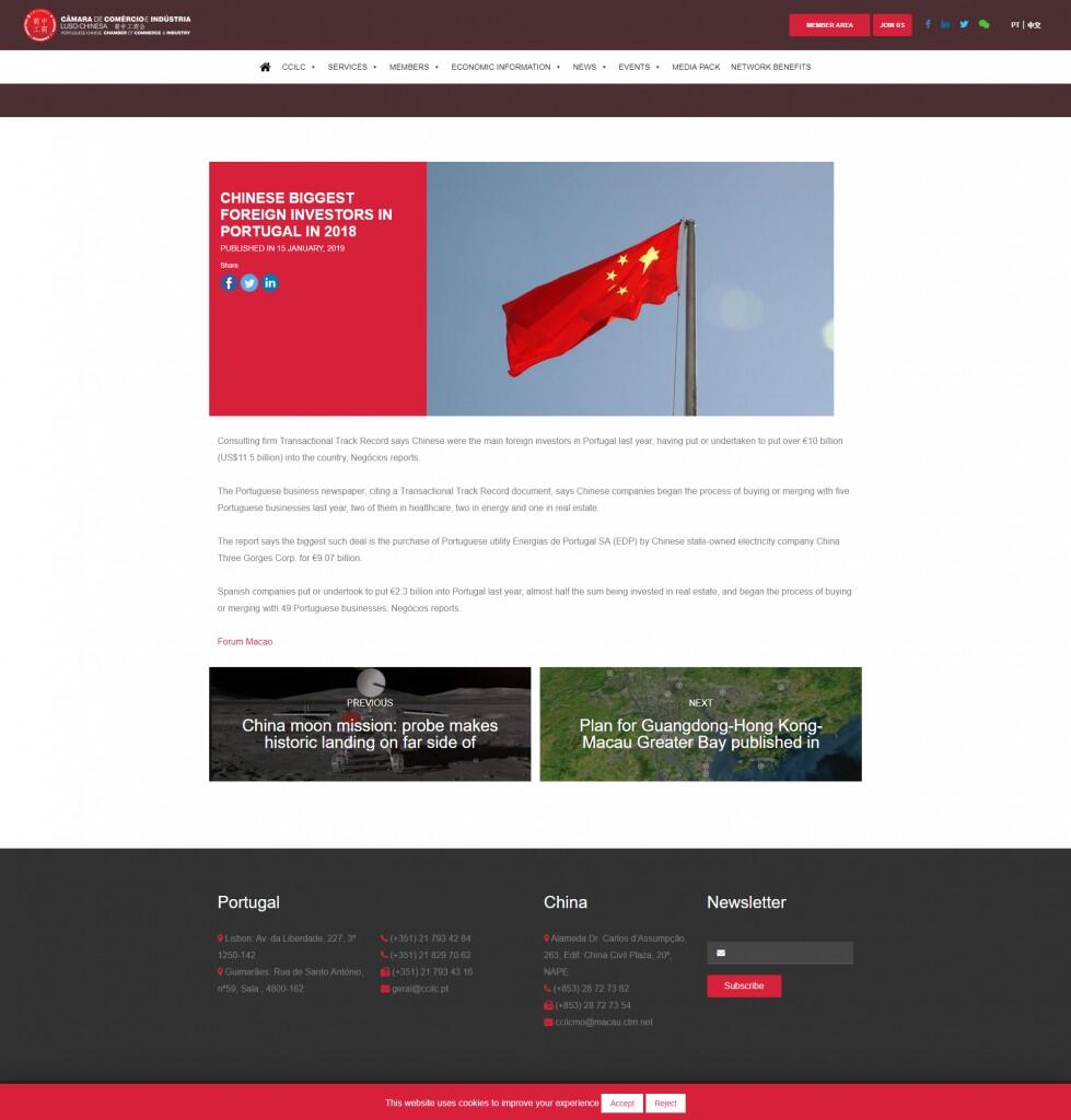 Chinese biggest foreign investors in Portugal in 2018