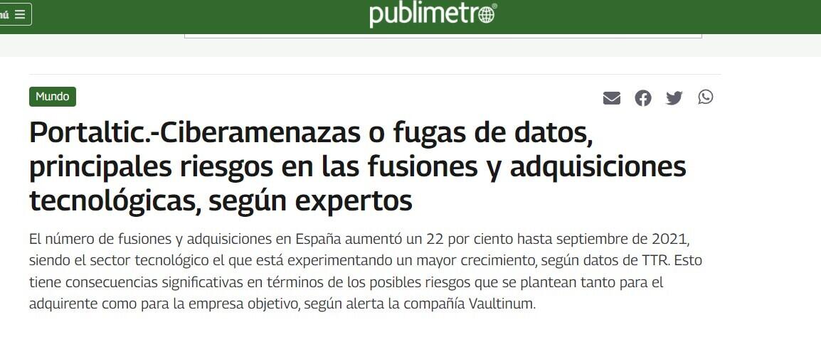 El número de fusiones y adquisiciones en España aumentó un 22 por ciento hasta septiembre de 2021, siendo el sector tecnológico el que está experimentando un mayor crecimiento, según datos de TTR. Esto tiene consecuencias significativas en términos de los posibles riesgos que se plantean tanto para el adquirente como para la empresa objetivo, según alerta la compañía Vaultinum.