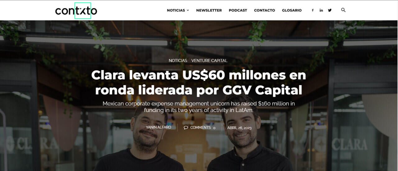 Clara, el unicornio mexicano de gestión de gastos para empresas en Latinoamérica, dio a conocer hoy el cierre de una ronda de inversión por US$60 millones liderada por GGV Capital, que también ha invertido en el unicornio mexicano de tarjetas de crédito Stori. Asimismo anunció que Hans Tung, Socio Director de GGV, se ha unido como miembro del Consejo Directivo de la startup.